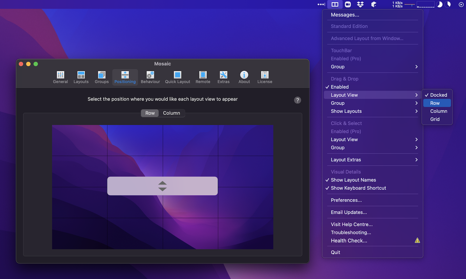 You can change the Layout View (in the context menu on the OS menu bar) to anything other than Docked, i.e. Row, Column or Grid. You can then configure where the position of the Row/Column shows up in Preference > Positioning. See screenshot below.
