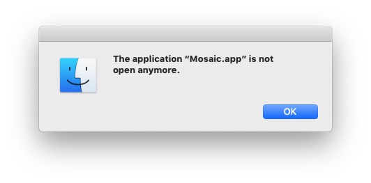 Here is the problem. I bought Mosaic years ago and enjoyed it all this time. But then came time to upgrade, so I've migrated my system 500Gb to new 1Tb ssd. And ever since I'm struggling to make mosaic to run longer than 24 hours. It just self-closes every night and that's it. Sometimes it hangs, and even trying manually restart it is impossible (see screenshot).
